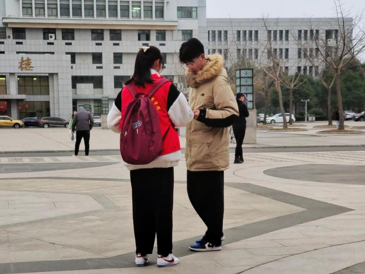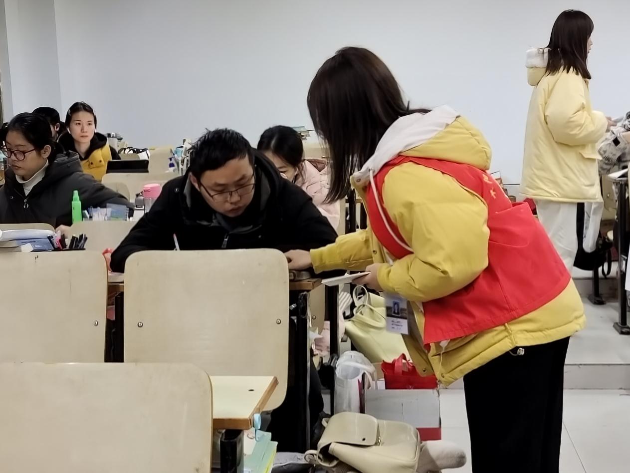 图3.志愿者在教学楼给考研学子送助力明信片