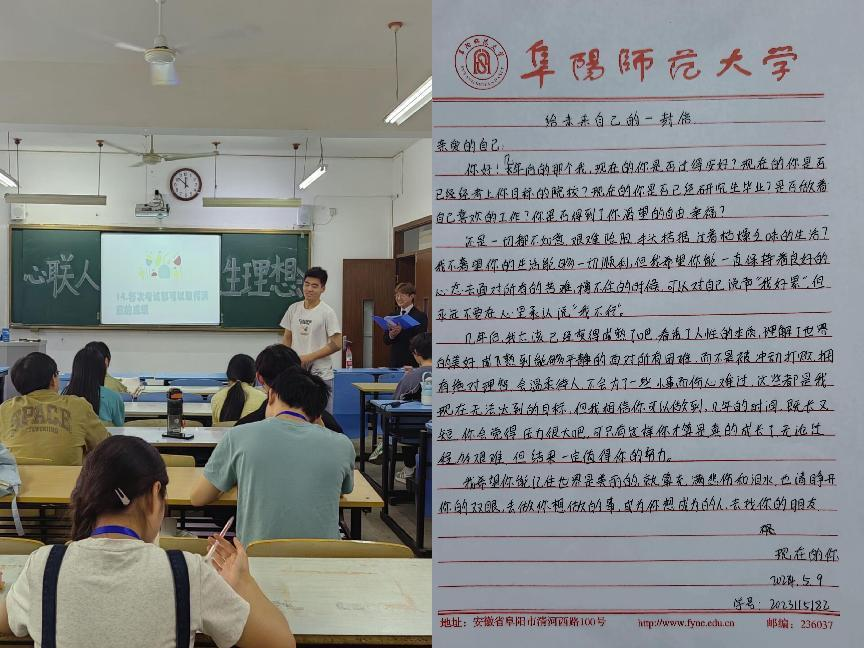 活动内容“新”,提高活动的吸引力。二级心理辅导站将心理健康活动与学科专业相结合,以拍卖会的形式,帮助同学们更加明确人生目标,对人生追求有了更加清晰的认识与思考;二级心理辅导站以“时光漫递——给未来自己的一封信”为主题,为同学们提供一个分析自我、定立目标的良好平台,通过一封信,让现在的自己与未来的自己对话,辅导站所收取信件将于2025年同一时间再次发送给同学们。