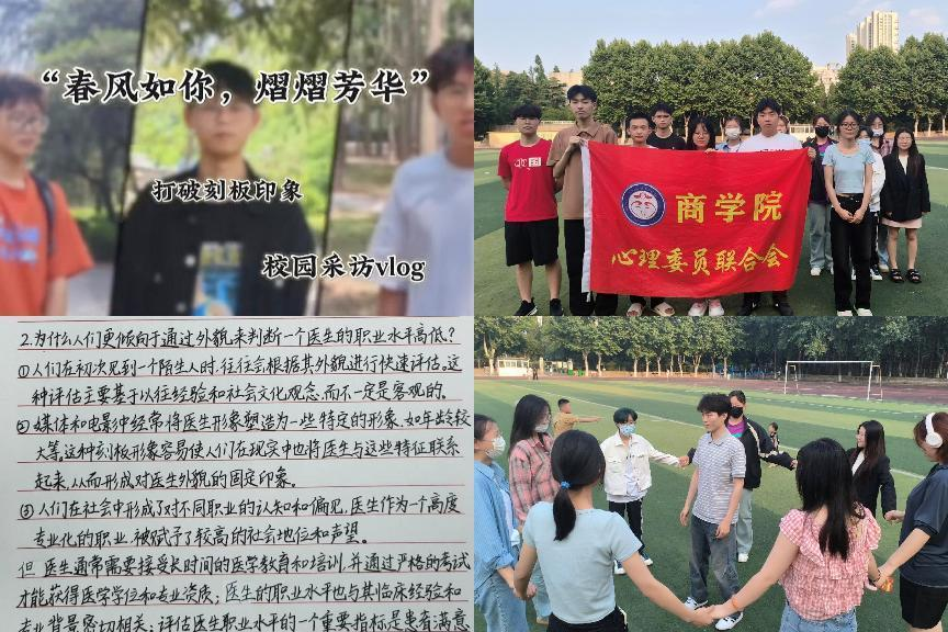 受益对象“广”,促进活动的普遍性。4月21日,二级心理辅导站在清河校区风雨操场开展心理团体辅导活动,我院2023级全体在校生400余人参与;5月10日-25日,二级心理辅导站以“拒绝标签化,做最好的自己”为主题,开展“春风如你,熠熠芳华” 校园采访vlog活动、“自由如风,为己着迷”心灵共鸣圈活动、“解救身处偏见的ta们”逻辑辩理大赛、“打破偏见,共迎美好未来”偏见自由市场活动等,引导同学们探索和表达自己,勇敢做自己,拒绝被贴标签。