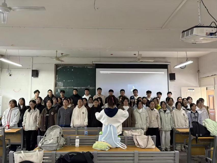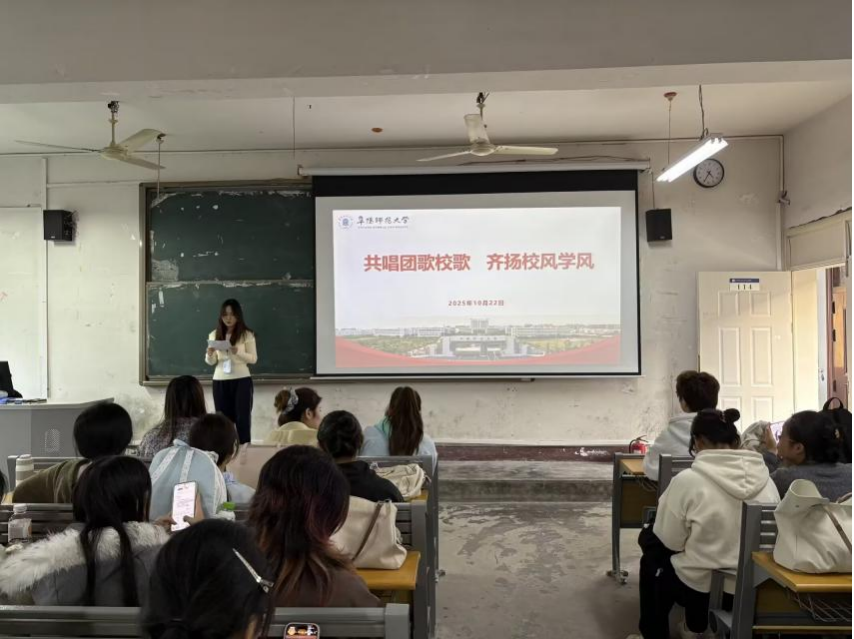 比赛现场,氛围热烈而庄重。《光荣啊,中国共青团》的激昂旋律响起时,参赛学子们身姿挺拔、眼神坚定,唱出了共青团员的责任与担当;校歌《阜阳师范大学校歌》的熟悉曲调回荡在教室内,同学们用深情的演绎,传递着对母校的热爱与祝福。评委团从歌曲演唱、精神面貌、舞台表现等多个维度进行专业打分,当场宣布2025级工商管理1班获得第一名并进入校赛。