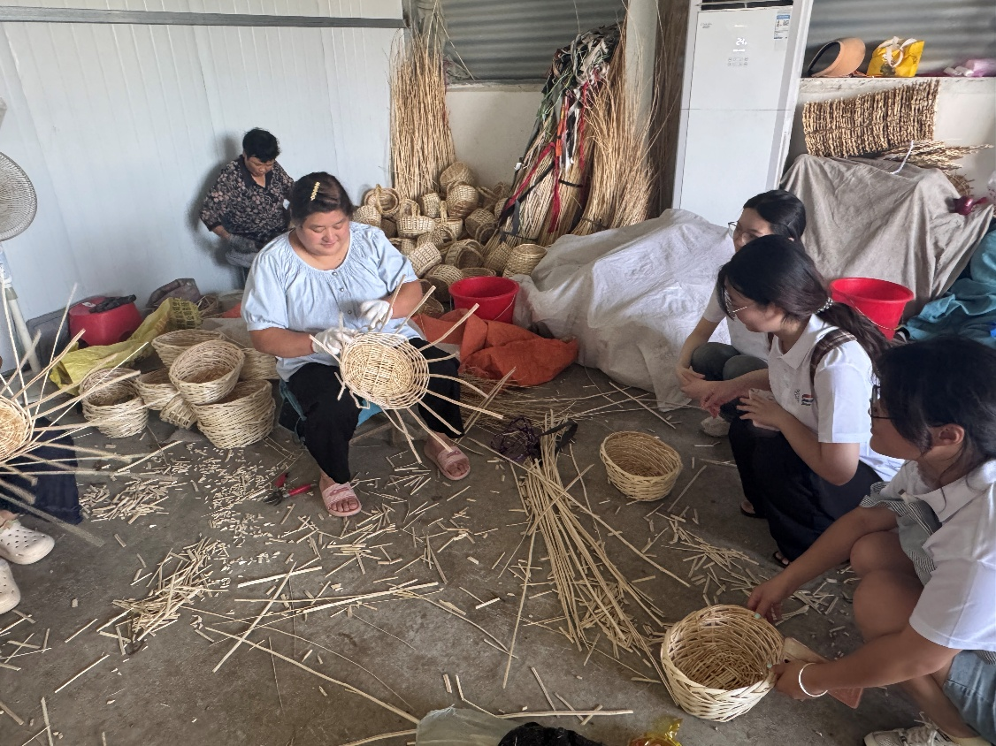 企业走访,洞察发展实情。黄岗镇作为“中国柳编之乡”,汇聚众多柳编企业。实践队先后深入多家代表性企业,从大型产业化工厂到小微手作工坊,近距离观察柳条编织、染色、组装全流程,与工匠交流编织技法传承,向企业管理者请教电商运营、品牌建设经验。针对企业反映的“订单波动大”“年轻技工短缺”等问题,队员们结合专业知识,提出短视频推广、校企定向培养等建议,搭建起青春智慧与产业需求的沟通桥梁。