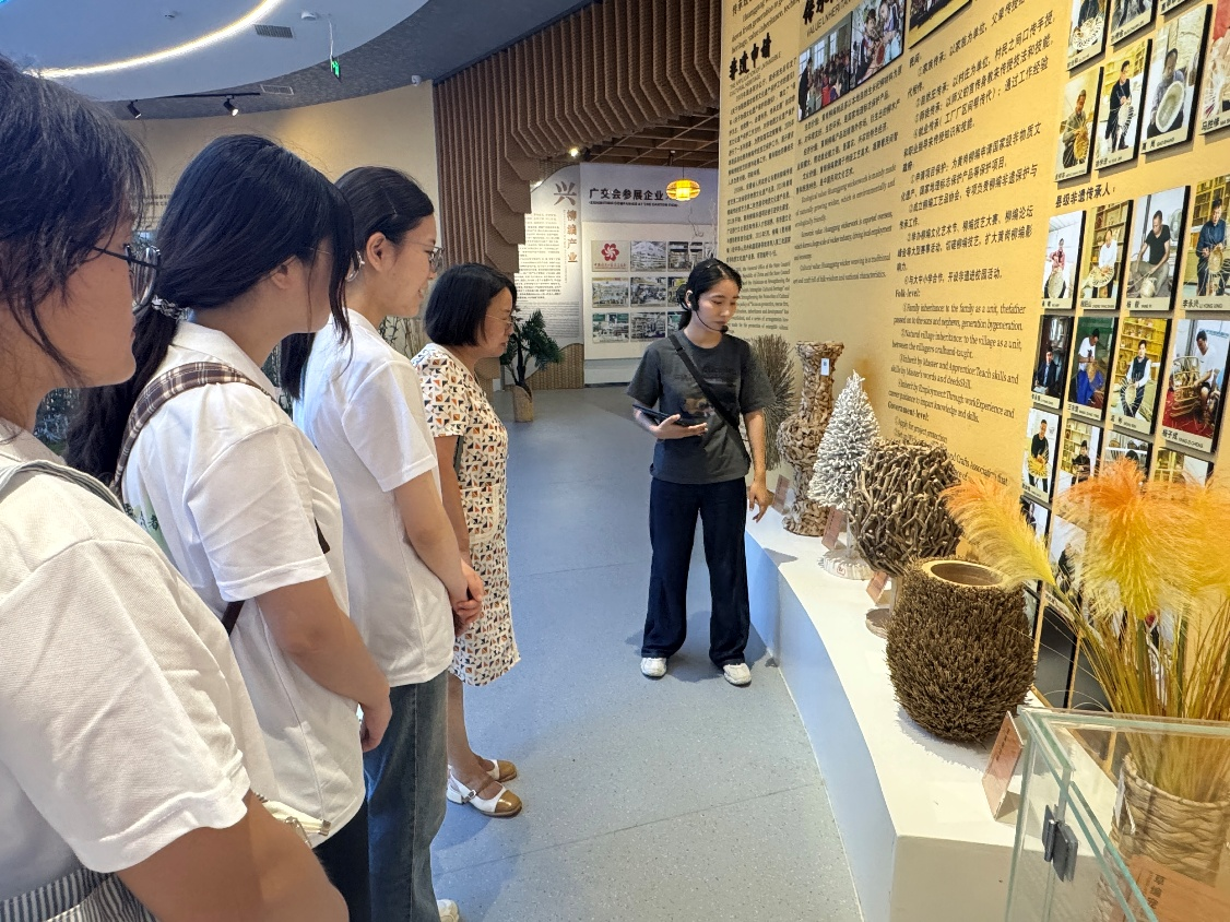 非遗探源,守护文化根脉。在黄岗柳编非遗展示馆,实践队跟随非遗传承人追溯柳编技艺千年传承史。一件件兼具实用与艺术价值的柳编作品,承载着当地百姓的生活智慧。队员们参与简易柳编手作体验,感受经纬交织间的匠心,更深刻理解非遗保护对产业可持续发展的意义,倡议通过“非遗 + 研学”“非遗 + 文旅”模式,让古老技艺“活”在当下。