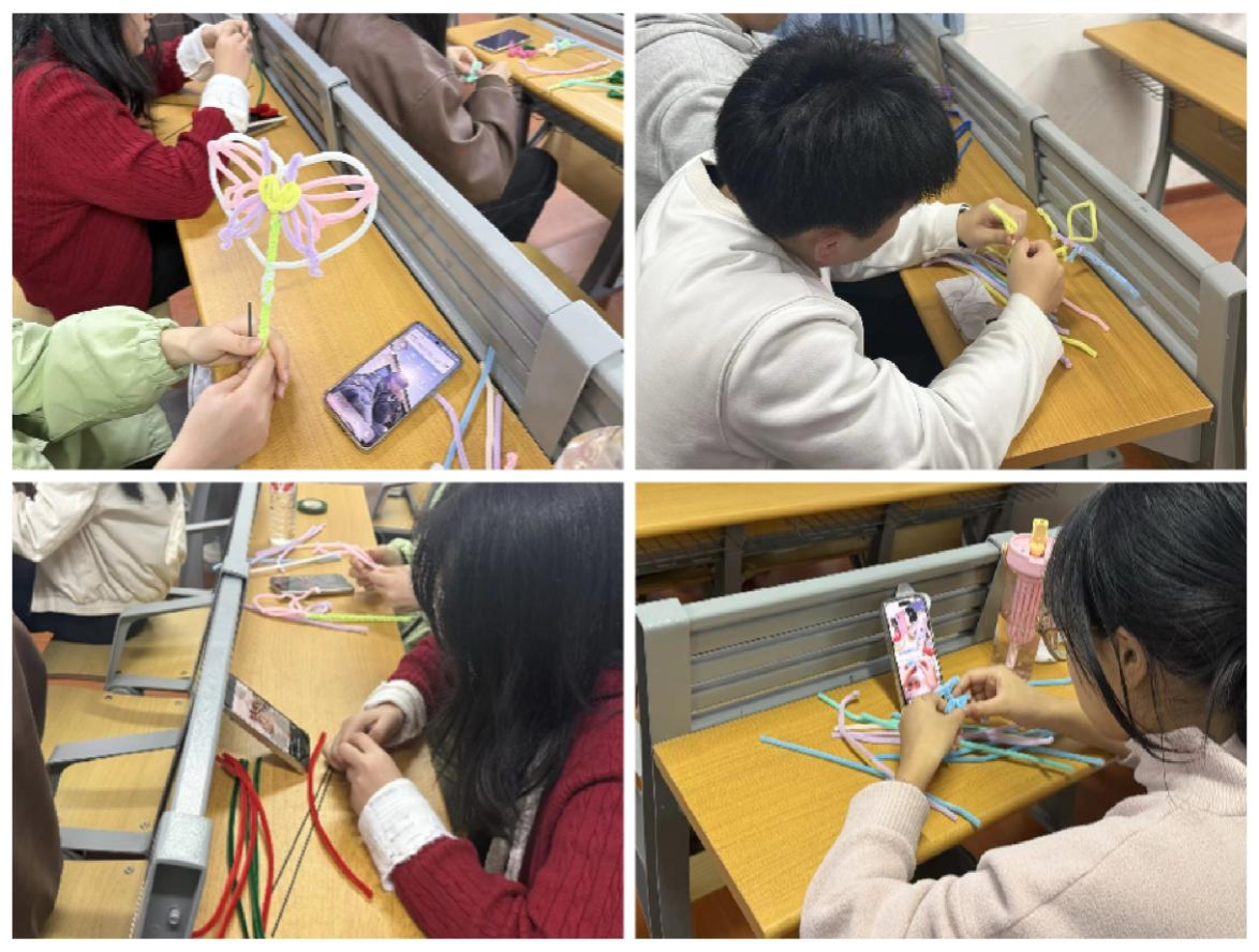 活动现场氛围温馨而热烈,心理辅导站为每位心理委员提前准备了扭扭棒、花瓣、花杆等创作材料,邀请大家亲手制作专属的“心灵之花”。创作环节结束后,每位心理委员依次展示自己的“心灵之花”,并讲述作品背后的寓意。此次心理团体辅导活动为心理委员搭建了交流沟通的平台,进一步增进了彼此间的情感联结,提升了团队凝聚力。