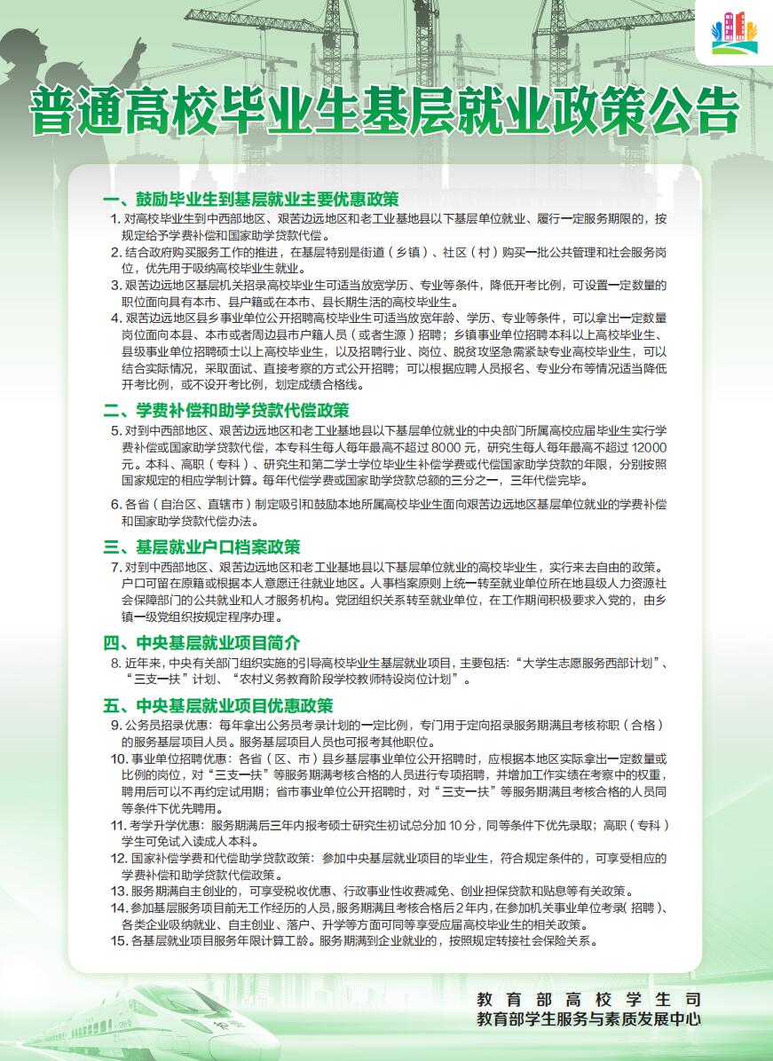 普通高校毕业生基层就业、自主创业、应征入伍政策和就业服务公告