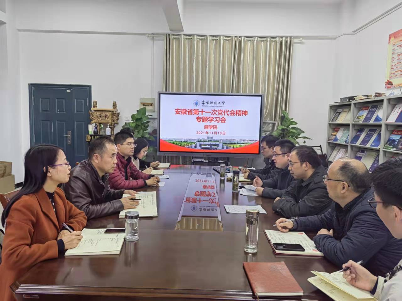 11月10日下午,我院召开党委会暨2021年第十四次理论学习中心组扩大学习会,专题学习省第十一次党代会精神,布置安排学院贯彻落实工作。院党委委员、组织员、秘书和辅导员参加学习会。院党委书记宋东锋主持会议。