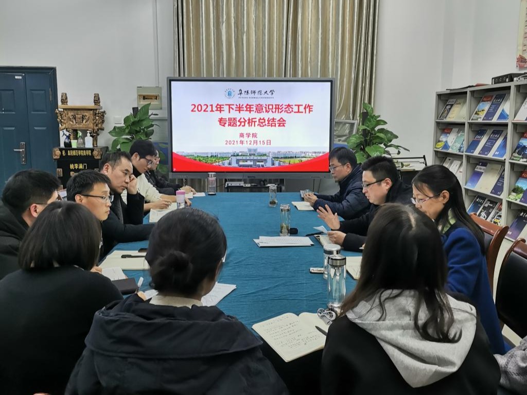 会议从组织领导、日常管理、学习教育、舆情监控、宣传引导、关注学生等方面对2021年下半年学院意识形态工作进行了回顾总结,并重点围绕学院阵地管理、人才引进、网络安全、特殊群体、师德师风建设等环节分析了存在的意识形态风险点及其原因。与会人员结合日常的工作实际和相应的防范措施展开了研讨,交流了各自意识形态工作情况和动态。会议认为,意识形态工作是党的一项极端重要的工作,关系到学院的和谐稳定发展,全院教职工必须紧紧围绕“立德树人”根本任务,在本职岗位上牢固树立责任意识,强化思想引领,严格落实意识形态工作。