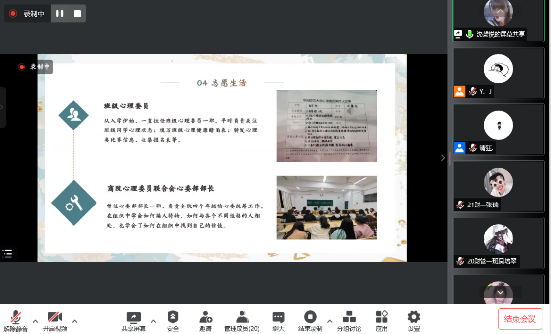 5月22日下午,根据疫情防控要求,“自强之星”评选活动通过线上PPT展示的方式进行,参与评选的“自强之星”们用朴实无华的语言和真挚的情感分享了不畏困难、自强奋进的心路历程和价值追求,他们以自强为信仰,以自立为方向,用实际行动诠释执着与坚持,用乐观与坚强奏响生命的乐章,生动地展现了励志青春的模样。经过认真评审,2019级工商管理1班沈馨悦被评为我院“自强之星”。