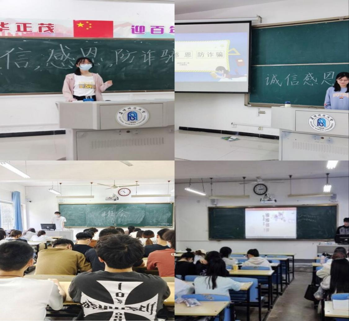5月11日至5月22日,我院分班级先后举办了以“诚信、感恩、防诈骗”为关键词的主题班会活动。