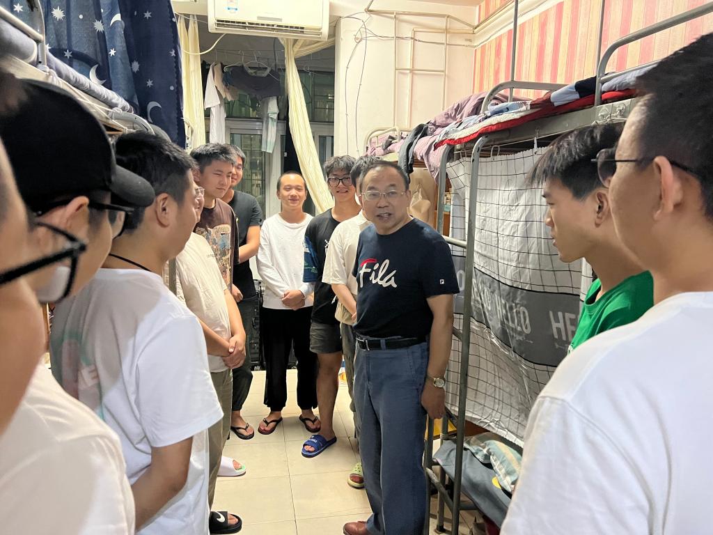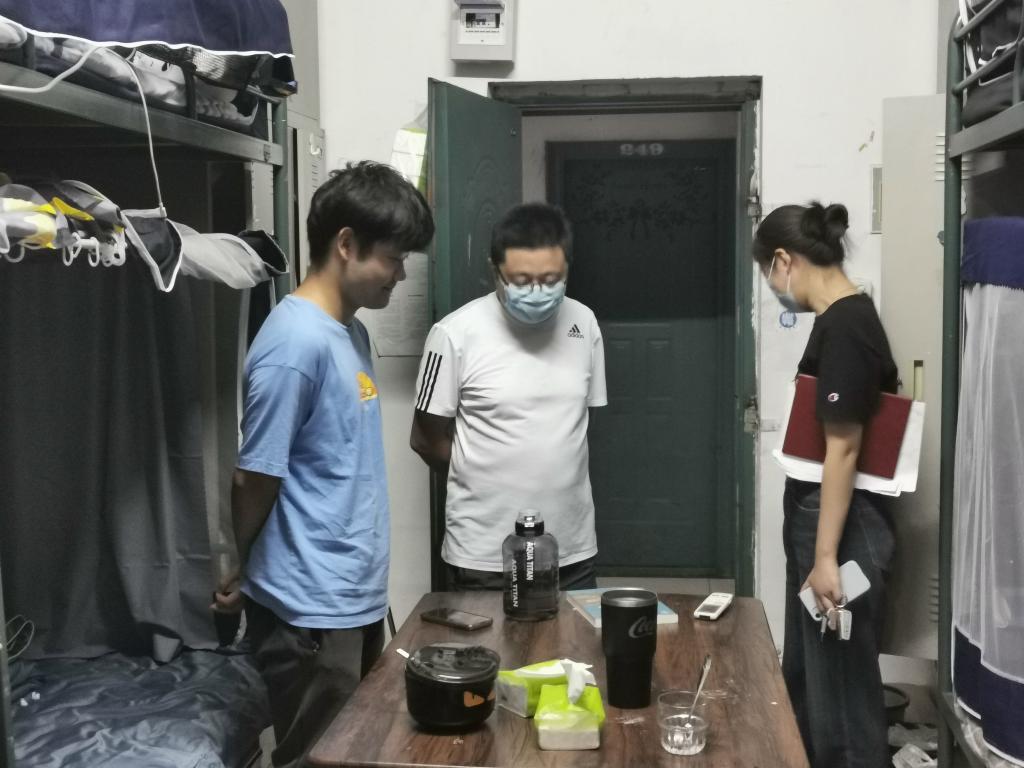 深入宿舍走访,真情守护陪伴。学院党委书记宋东锋、院长朱剑峰、副书记王永刚带领两校区辅导员坚持每天下沉一线,常态化走访学生寝室。详细了解疫情防控期间学生的学习、生活、心理等情况,就线上学习、寝室卫生、用电安全、合理饮食等方面与同学们进行详细交流。教育学生严格遵守学校各项疫情防控规定,保持积极健康的身心状态,共同营造安全有序的校园环境。希望学生强化防控意识,持续绷紧思想之弦;坚定信心决心,切勿过度恐慌焦虑;践行文明理念,养成良好生活习惯。