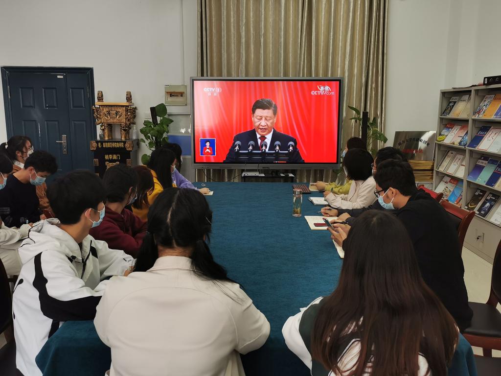 10月16日,中国共产党第二十次全国代表大会在北京隆重召开,习近平总书记代表第十九届中央委员会向大会作报告。上午10时,我院广大师生以高昂的精神风貌和饱满的热情,收听收看二十大开幕会盛况。按照当前疫情防控要求,学院以党委理论中心组学习、党员发展对象培训、入党积极分子培训、党团支部学习等方式,在会议室、教室、寝室等不同场所,采取线上、线下相结合收看大会直播,第一时间学习领会大会精神。