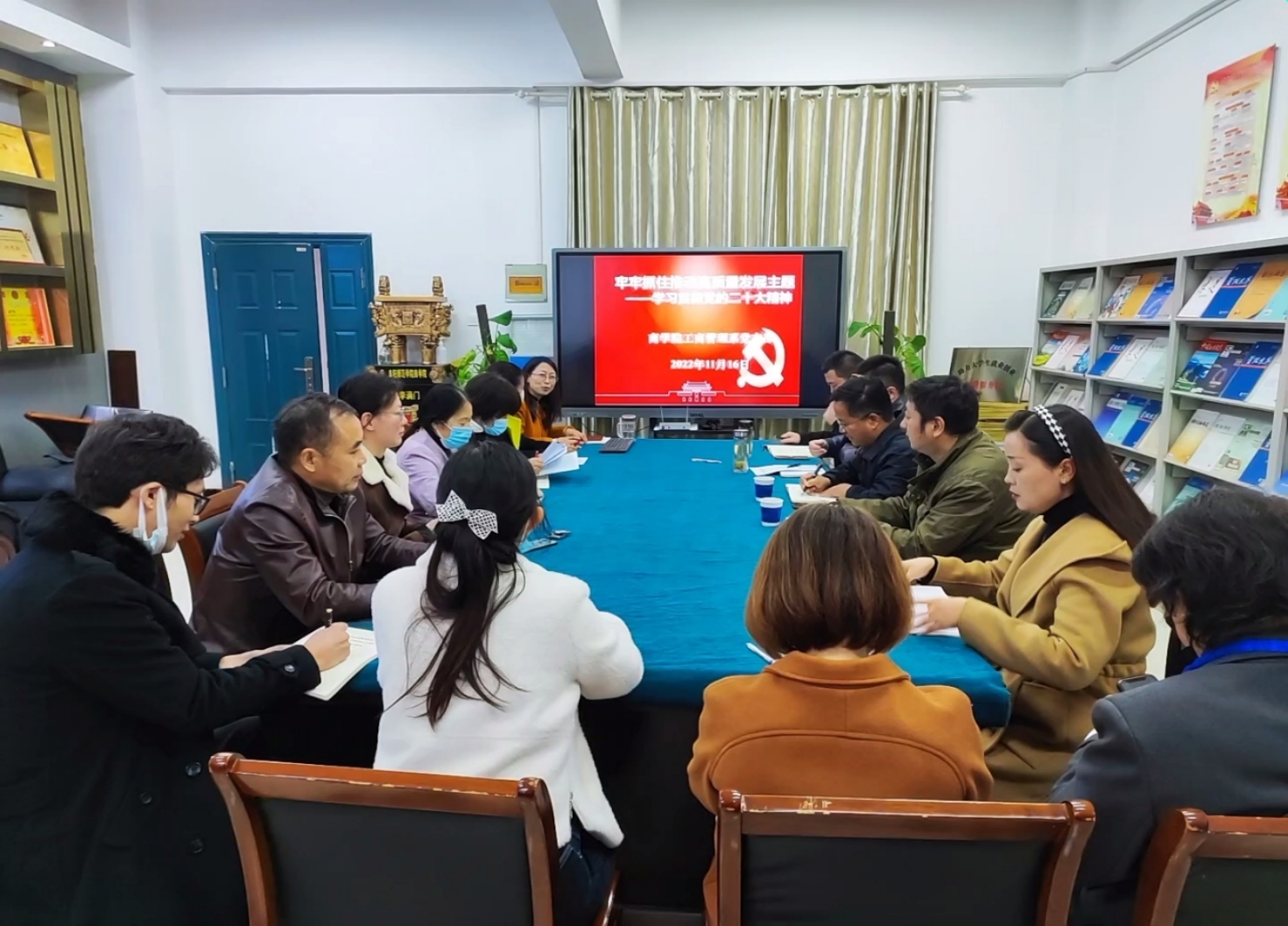 11月16日下午,我院工商管理系党支部召开全体党员会议,开展党的二十大精神宣讲专题党课活动。校党委第二巡察组成员、教育学院党委副书记葛西强和马克思主义学院党委专职组织员陈宏建列席会议,党课由党支部书记张克荣主讲。