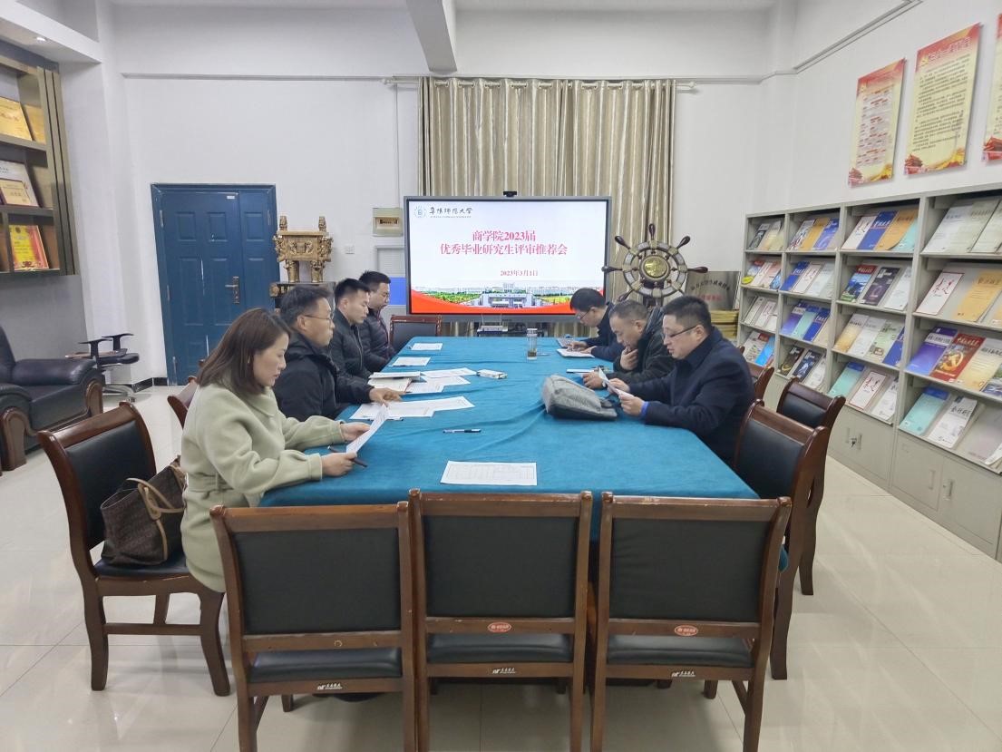 3月1日下午,院党委书记宋东锋主持召开商学院2023届优秀毕业研究生评审推荐会。院长朱剑峰、院党委副书记王永刚、导师代表冯艳刚、王萍出席会议,研究生代表王超、李子健,及研究生秘书赵玉老师参加会议。