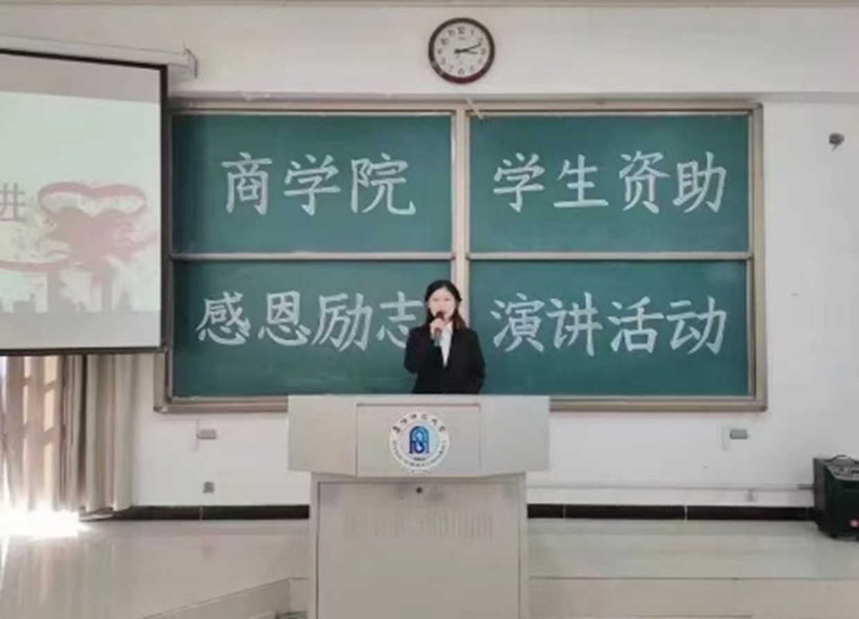 “自立自强、励志成才、报效祖国”主题演讲活动。为深入宣传党和国家的学生资助政策,激发广大受助学生勤奋学习、积极进取、全面发展、勇攀高峰的热情,培育受助学生感恩国家、感恩社会、感恩他人的情怀,营造充满活力和健康向上的校园文化氛围。商学院开展“自立自强、励志成才、报效祖国”等主题演讲活动。本次比赛为受助学生提供了一个展现自我、提高综合素质的机会,充分展现了他们“自立自强 励志成才 报效祖国”的精神风貌,也激励其他学生刻苦学习、奋力进取。