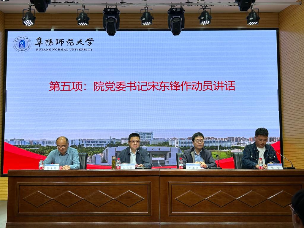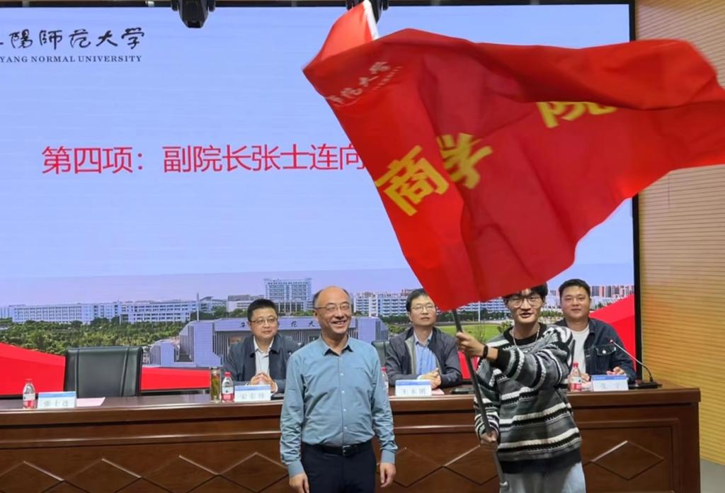 动员会上,王永刚宣读了《关于成立阜阳师范大学第49届运动会商学院代表团的通知》《阜阳师范大学第49届运动会商学院代表团奖励办法》。张士连向参赛运动员代表团授旗。2022级财务管理2班学生洪旗代表运动员发言并领誓,2022级工商管理1班学生周全代表志愿者发言。与会人员共同观看了杭州亚运会中国健儿夺冠的视频集锦以及商学院参加往届校运动会的视频剪辑。