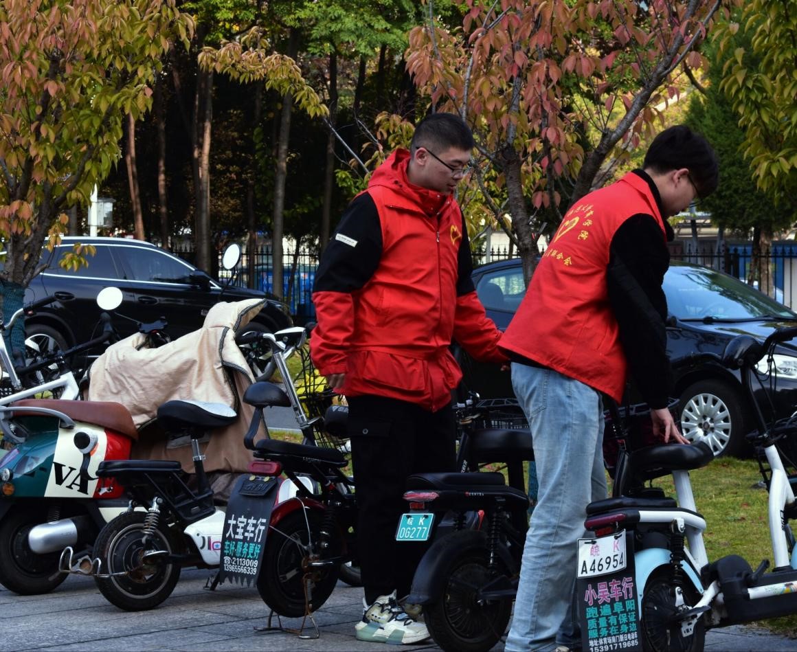 为了弘扬法治交通精神,提高广大学生的道路交通安全意识和文明意识,同时更好地规范落实校园电动车停放秩序,营造和谐有序的文明校园形象,商学院“一站式”学生社区功能型党支部联合商学院青年志愿者联合会于11月12日在阜阳师范大学西湖校区开展了“倡导交通安全,营造文明校园”志愿服务活动,对校园内电动车的停放进行规整,并对校园交通安全管理规定进行宣传。