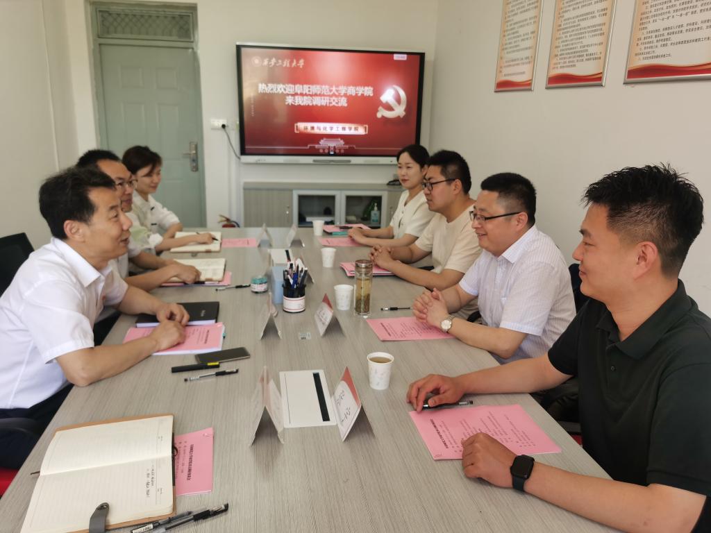 西安工程大学3个二级学院对我院一行表示热烈欢迎,并分别召开座谈交流会。在城市规划与市政工程学院,该学院党委书记王劲伟、副书记鱼园详细介绍了学院获陕西省高校校园文化建设优秀成果二等奖的红色文化学习班建设情况。在环境与化学工程学院,该学院党委书记胡西民、院长武占省介绍了学院绿风环保协会党支部在创建全国样板支部工作中学院党委政治功能与组织功能作用发挥情况;该学院党委副书记林定武系统介绍了学院“一站式”学生社区建设及三全育人导师团工作开展情况。在机电工程学院,该学院党委书记阚佩、副书记冯翊围绕全国首批党建工作标杆院系的申报、创建、验收进行了全面介绍。
