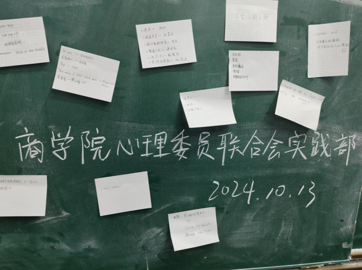 同学们首先将想与他人分享的音乐写在便利贴上,然后逐个贴在“情绪音乐盒”黑板上。随后,同学们之间互相交换耳机,通过耳机里传达的音乐感受对方的内心情绪。在快节奏的校园生活中,大学生们常常会面临学业压力、人际关系、未来发展方向以及亲情等重重挑战。在面对这些压力时,很多同学会选择通过音乐去缓解压力,音乐让人们跳动相同的节奏,放下隔阂和拘束,从而增进彼此的交流和了解。比如聆听白噪音、节奏欢快的说唱或脍炙人口的流行歌曲。此次活动中,《好运来》《今天是个好日子》《爱如火》等歌曲广受好评,同学们纷纷表示:烦恼时听听音乐,能重新燃起生活的热情,唤起人们对美好生话的回忆和憧憬,使人心理趋于平静。
