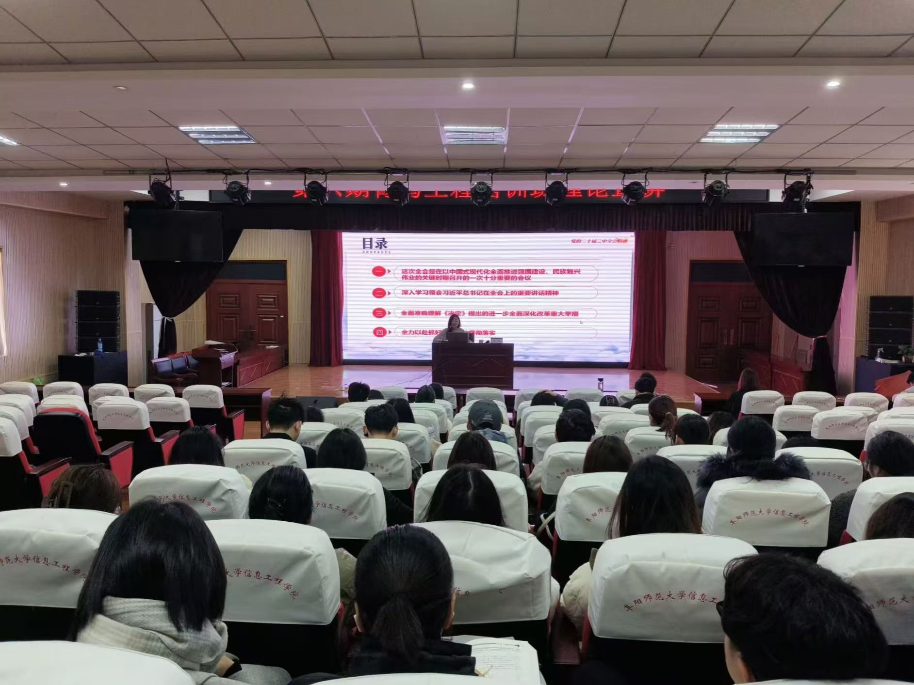 为深入学习贯彻党的二十届三中全会精神和习近平总书记重要讲话精神,深刻领会党的二十届三中全会报告的重大政治意义、理论意义和现实意义,11月30日,校青年讲师团成员贺琳走进我院开展党的二十届三中全会精神宣讲,学院研究生党支部党员、青马班学员、新发展团员参加宣讲。