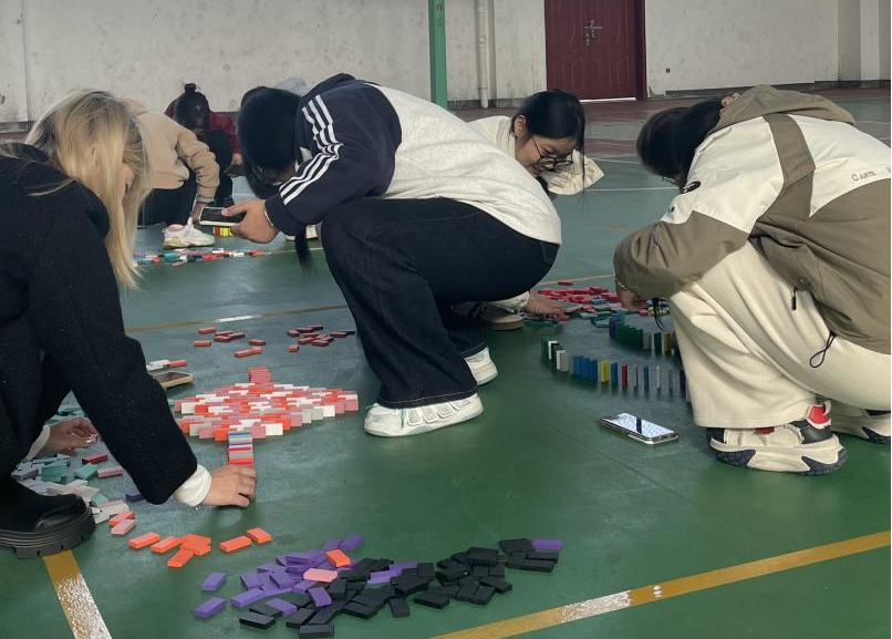 “创意逐梦,巅峰对决”——多米诺骨牌大赛。多米诺骨牌作为一项集动手、动脑于一体的集体活动,不仅能锻炼耐心和专注力,还有利于提升学生心理素质,体会团队协作的重要性。本次大赛共40支队伍参与,包括骨牌搭建、寓意解说、骨牌推倒三个环节。每个团队需要在30分钟内将骨牌进行创意摆放。各组选手分工协作,充分发挥想象力和创造力,有的团队以童话故事为主题,用骨牌搭建出了梦幻的城堡;有的则挑战高难度的几何图形,力求在推倒瞬间呈现出震撼的视觉效果。参与者和观众一起分享创意、交流经验,感受团队合作的乐趣。本次活动进一步加强了同学之间的沟通交流,增进了人与人之间的感情,有利于提升个体的归属感和幸福感。