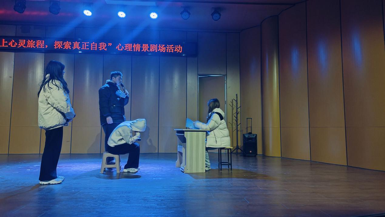 “踏上心灵旅程,探索真正自我”——心理情景剧场活动。11月29日,我院心理委员联合会与音乐舞蹈学院心理委员联合会联合举办以“踏上心灵旅程,探索真正自我”为主题的心理情景剧场活动,与同学们共同经历了一次深刻的心灵探索之旅。剧目内容涵盖了校园生活的各个方面,如学业压力、人际关系、情感纠葛等,引发了广泛共鸣。本次情景剧场活动同学们提供了一个展示自我、认识自我的平台,进一步普及了心理健康知识,促进校园心理健康建设。