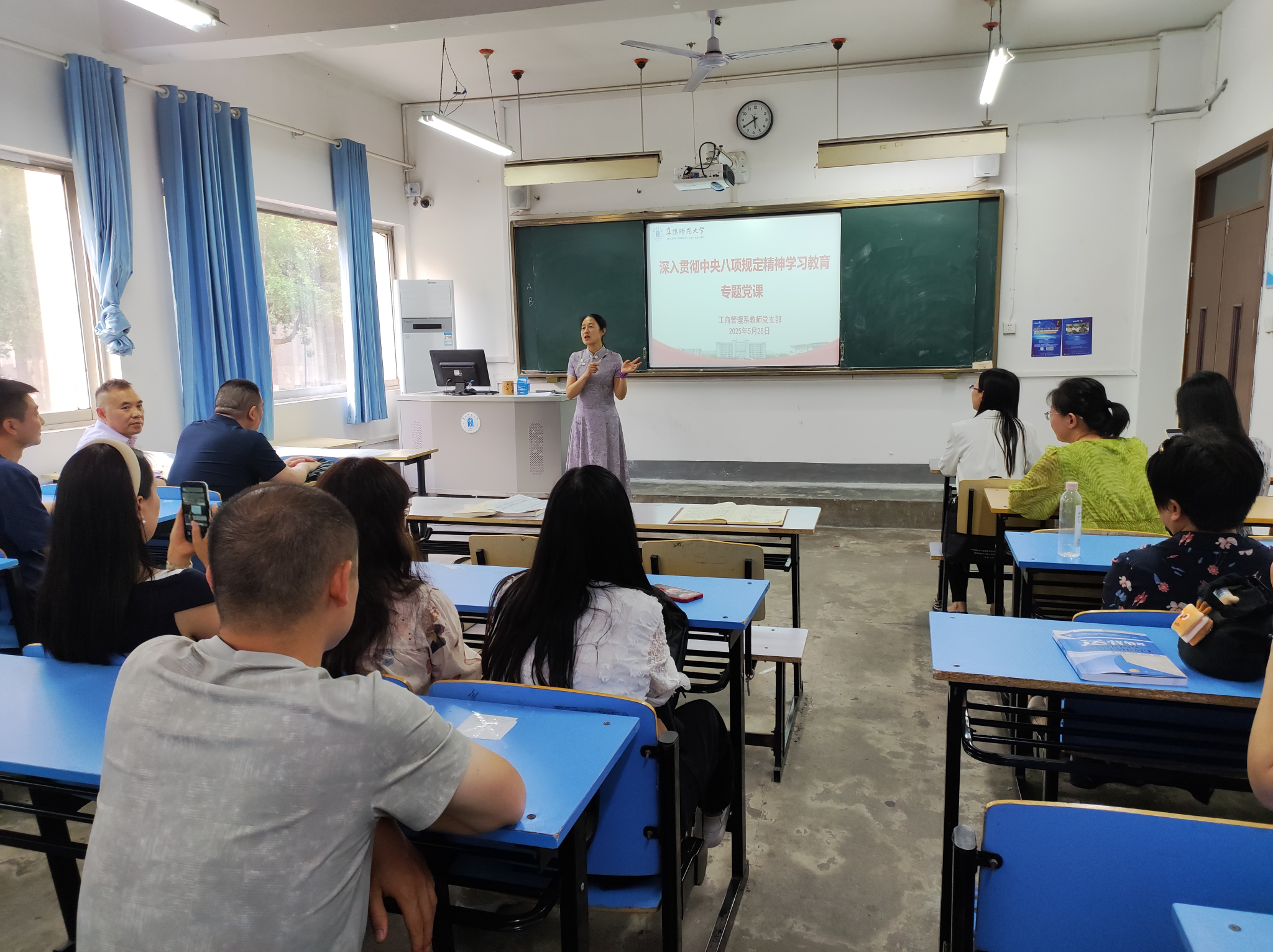 为深入学习贯彻习近平总书记关于加强党的作风建设的重要论述,持续推进中央八项规定精神,5月28日下午,我院工商管理系党支部开展深入贯彻中央八项规定精神学习教育专题党课。此次党课由副院长韦向阳、学术副院长张克荣分别进行宣讲,旨在引导党员教师深刻领悟中央八项规定精神,强化作风建设,提升服务效能。