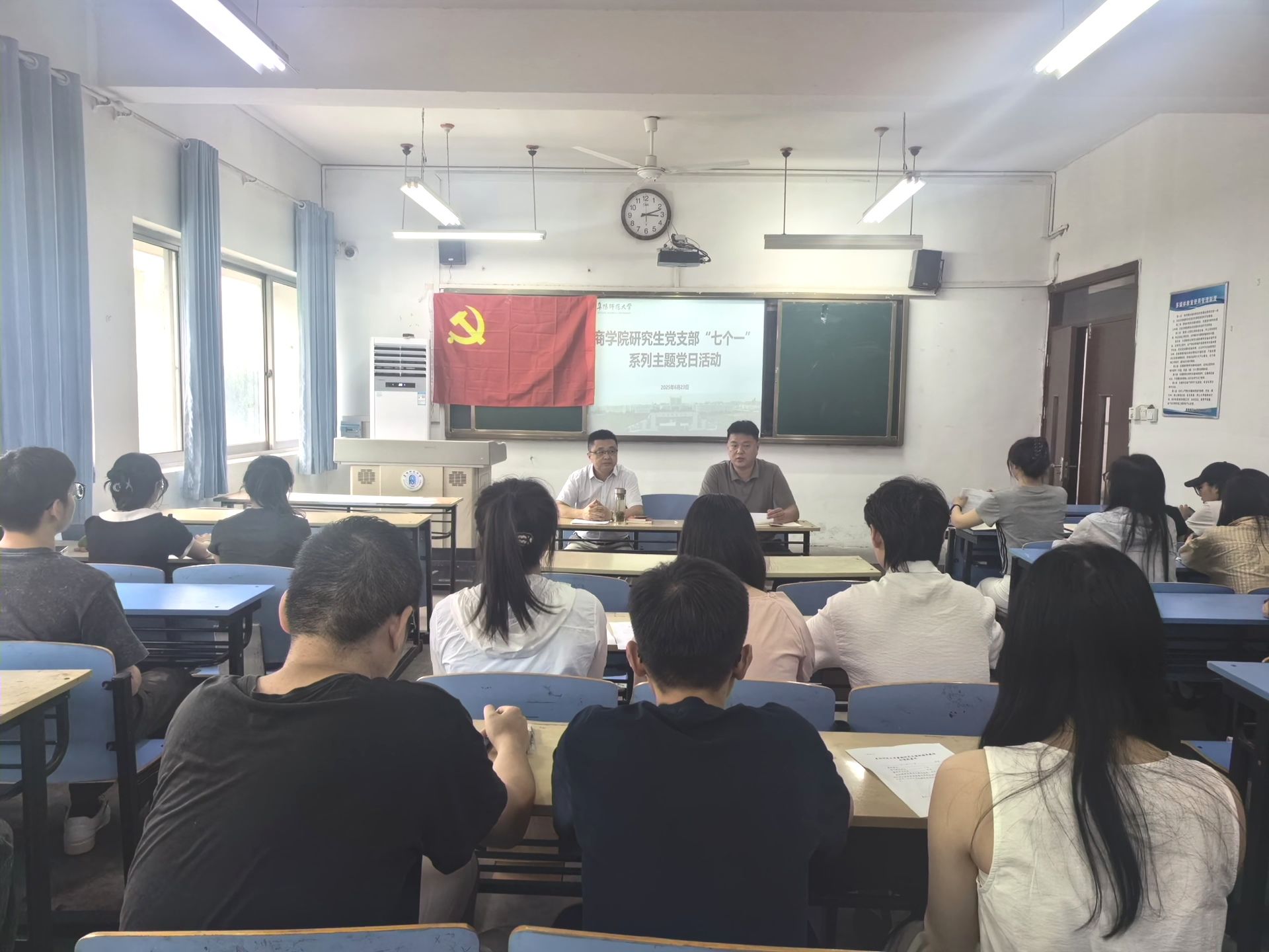 宋东锋以“经典与人生:马克思主义经典著作对新时代青年学生的启示”为题讲授专题党课。他围绕领略真理的力量,坚定理想信念,掌握看家本领;领悟道义的力量,树立崇高理想,成就精彩人生;领会实践的力量,强化思想自觉,促进成长成才;强化知行之路,把握习近平总书记对青年学生的殷切嘱托等四个方面,寄语全体研究生党员既要破除急功近利的浮躁心态,又要拒绝“躺平”“佛系”的消极姿态;既要培育“强国有我”的担当,又要锤炼“功成不必在我”的胸襟;既要培树“终身学习”的治学态度,又要涵养“敢闯新业”的创新锐气,在把握机遇中锤炼本领,在应对挑战中砥砺品格,始终将个人成长置于家国命运的坐标系中,以“小我融入大我”升华青春意义,用“健康工作50年”诠释持续奋斗的生命观。