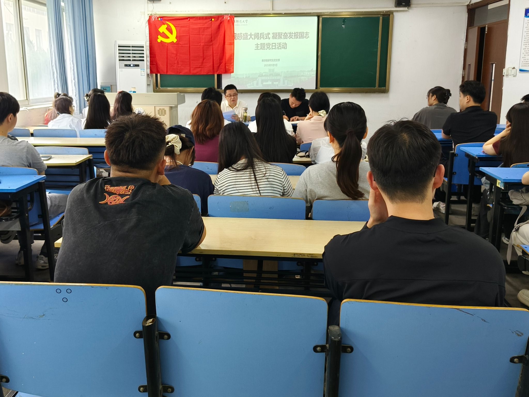 为深入学习、传承弘扬伟大抗战精神,9月9日下午,我院研究生党支部组织开展“观感盛大阅兵式,凝聚奋发报国志”主题党日活动。院党委书记宋东锋、支部全体党员参加活动。活动由支部书记张宇主持。