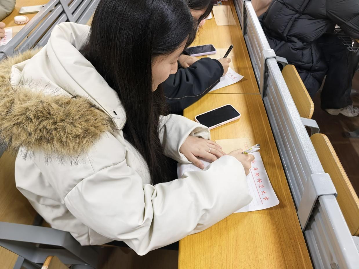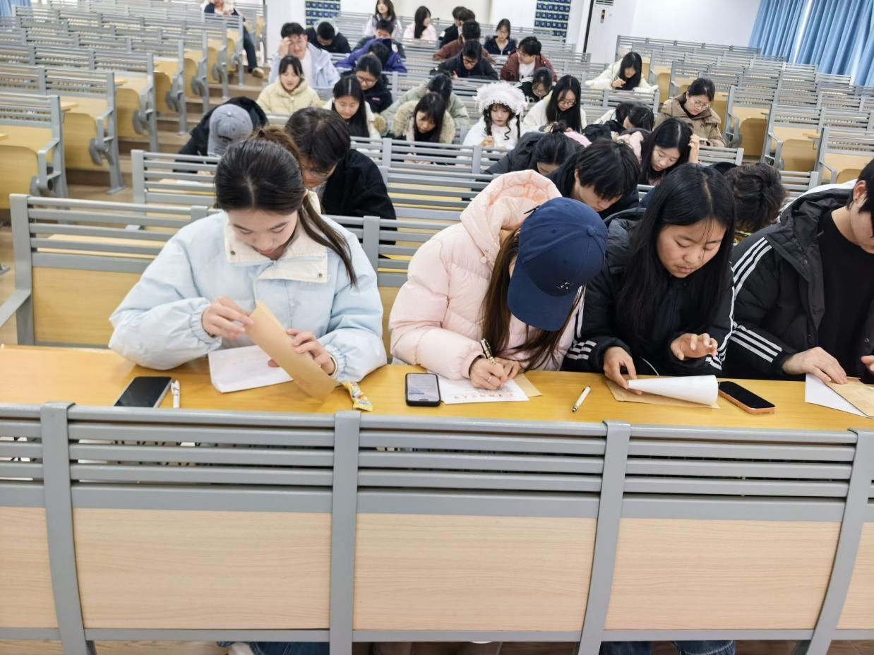 在各学院特色实践环节中,“信件树洞盲盒活动”受到参与学生的欢迎。活动现场,新生心理委员们纷纷拿起纸笔,将自己进入大学后的困惑、对新生活的感悟、成长中的烦恼或是温暖的期许,以匿名书信的形式写下。随后,大家将信件投入“树洞信箱”,再随机抽取一封来自其他同学的“盲盒信件”。通过这种“匿名书写—随机交换—真诚回应”的模式,有利于新生心理委员们释放压力,在换位思考中学会倾听与理解,体会传统通信所承载的真挚情感。