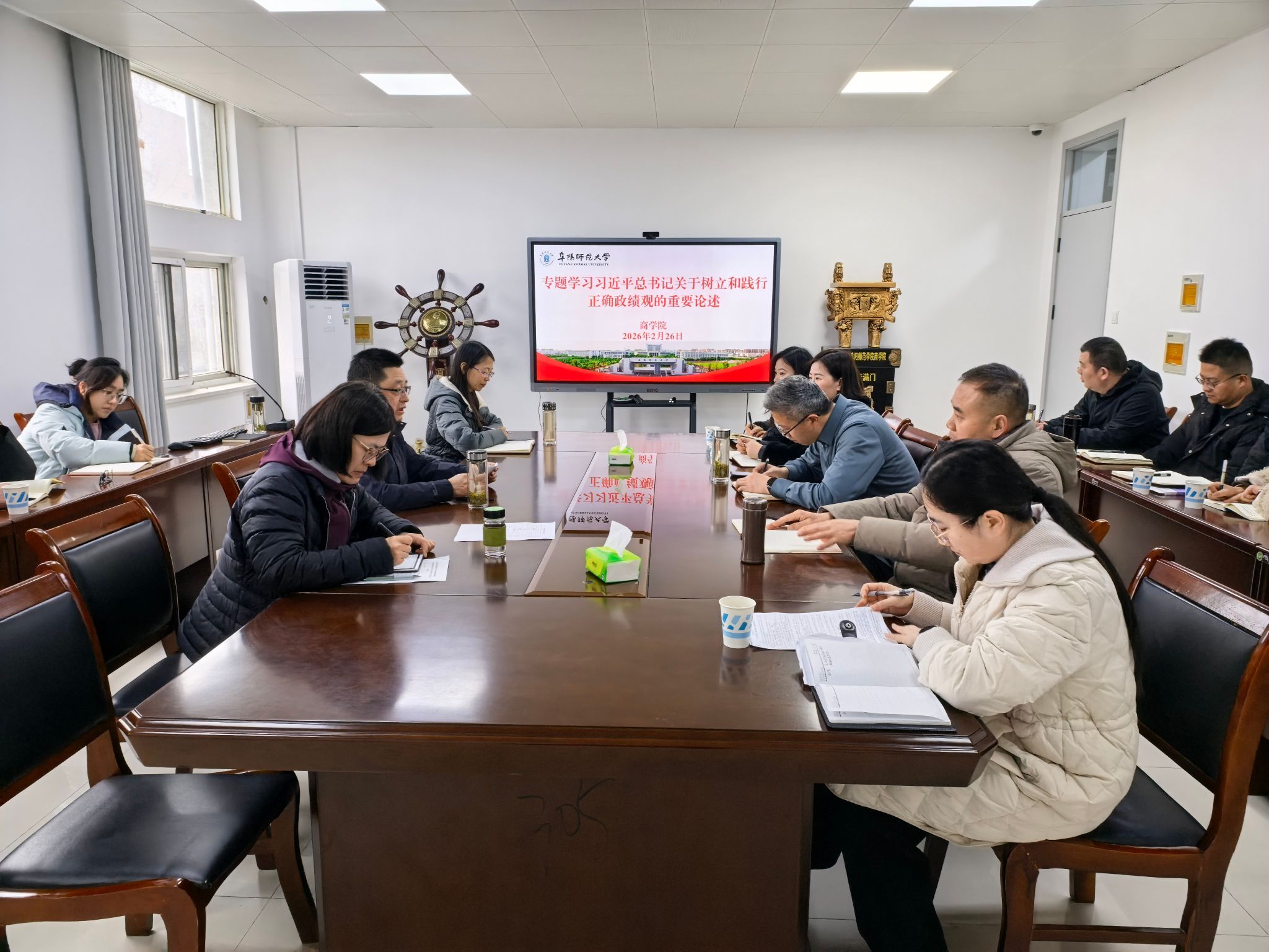 2月26日,寒假轮休后的首个工作日,我院党委理论学习中心组召开2026年第2次集中学习会,专题学习习近平总书记关于树立和践行正确政绩观的重要论述。院党委委员、各党支部书记、教研室主任、各秘书参加会议,会议由院党委书记宋东锋主持。