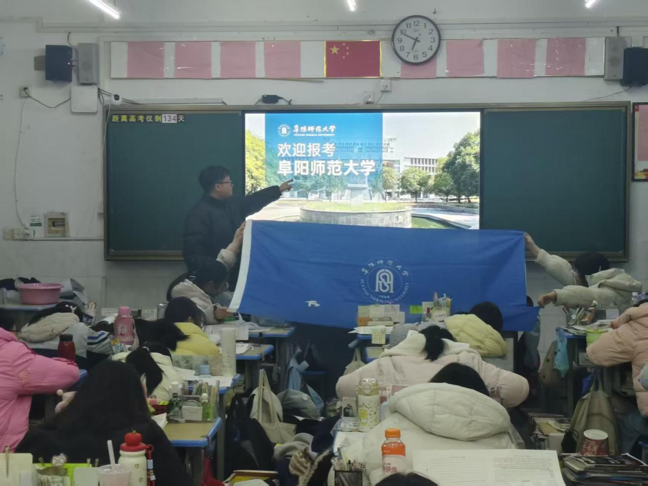 我为师大代言,传递青春力量。以我校建校70周年为契机,我院学子主动返回高中母校,开展“七秩薪传”校友寻访与“我为师大代言”宣讲活动。2025级工商管理1班安煜、纪天宇、赵子君团队重返母校张家口市第一中学、正定一中、寿县二中,通过PPT展示、互动答疑等形式,向学弟学妹介绍阜阳师范大学的办学特色、校园文化与招生政策,并分享高考备考经验。2025级工商管理1班任宇帆联合其他专业同学,在母校阜阳市成效高级中学开展宣讲,耐心解答学弟学妹关于专业选择、时间规划的困惑,鼓励他们坚定目标、全力冲刺。2024级工商管理1班刘思涛回到太湖县朴初中学,面向高三、高二两个班级进行宣讲,以“选择权”“资源库”“成长见证”为关键词,描绘真实可感的大学生活,并分享学习策略,激发了学弟学妹的备考动力。2025级工商管理1班营祝旭在母校寿县第二中学多媒体教室组织宣讲,团队分工协作,从学校概况到招生政策、从校园生活到备考技巧,全方位展示师大风采。一次次宣讲,不仅传递了师大的声音,更播撒了梦想的种子。