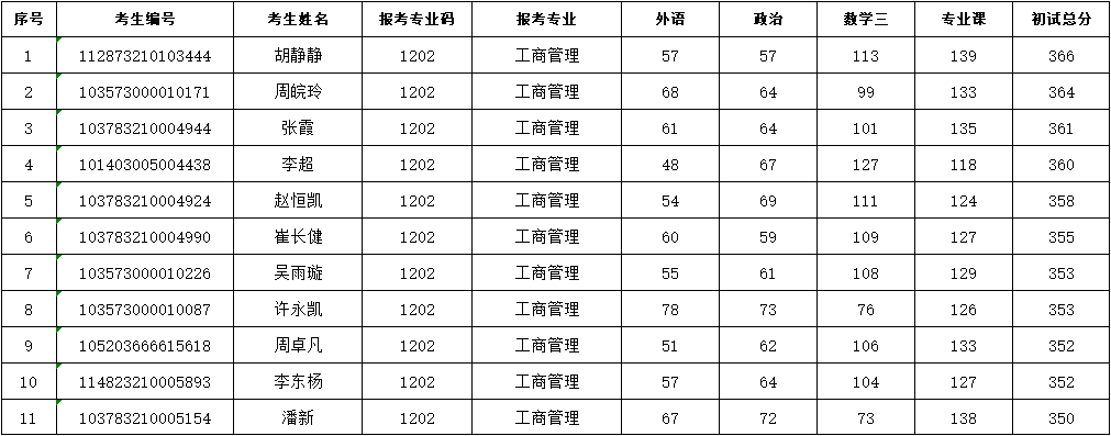 商学院2023年硕士研究生招生第1次调剂复试考生名单