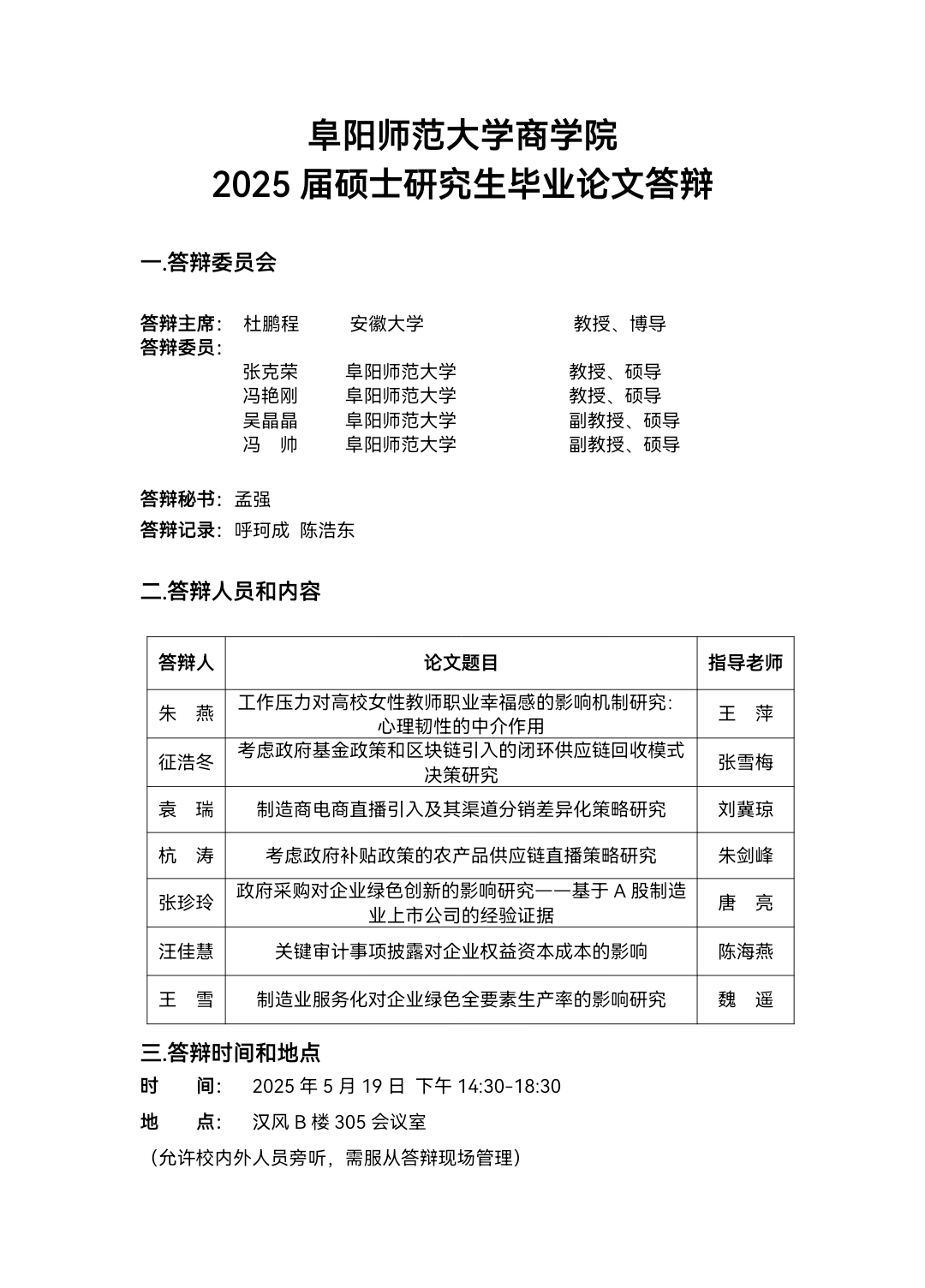 阜阳师范大学商学院2025届硕士研究生毕业论文答辩
