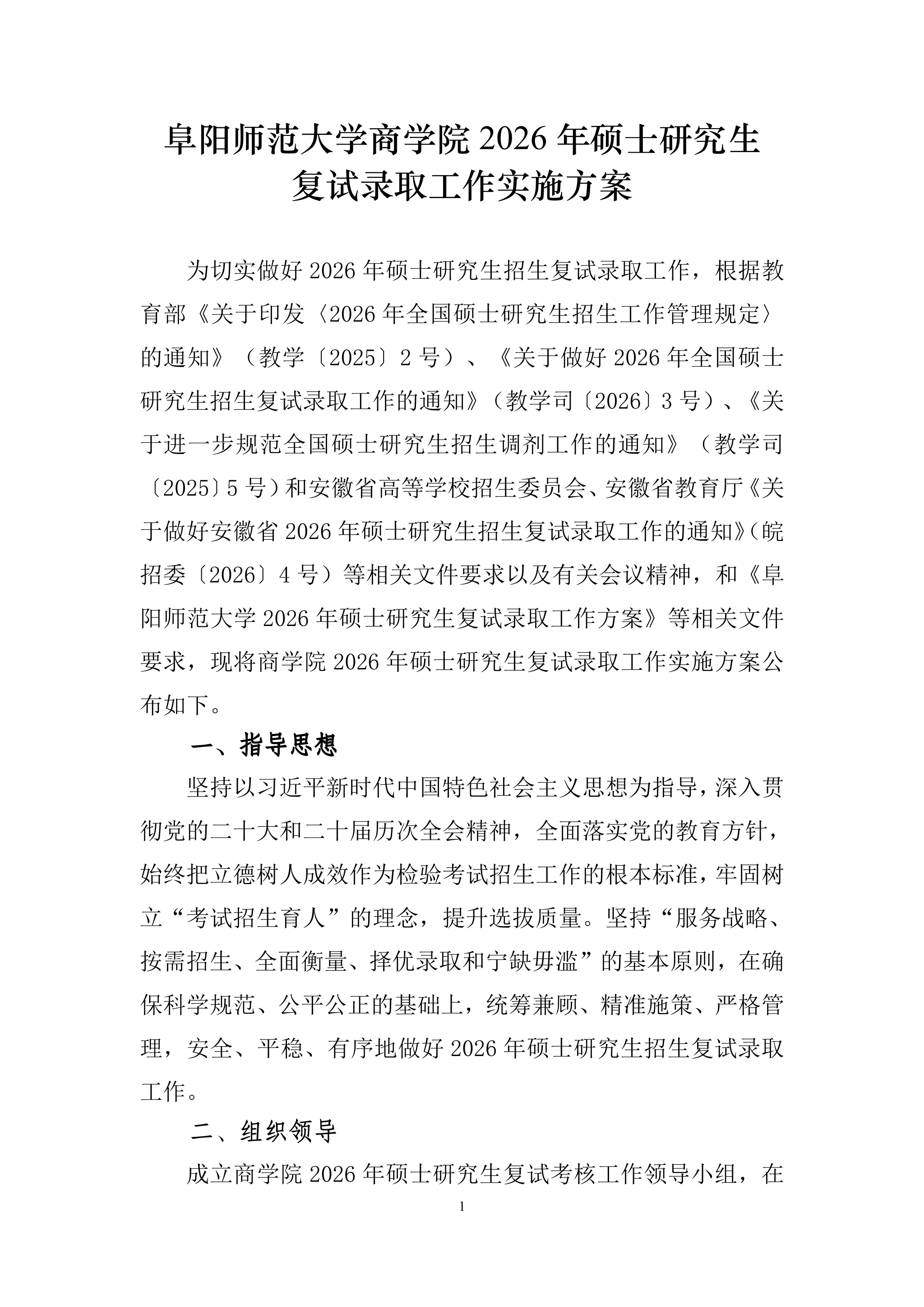 阜阳师范大学商学院2026年硕士研究生复试录取工作实施方案