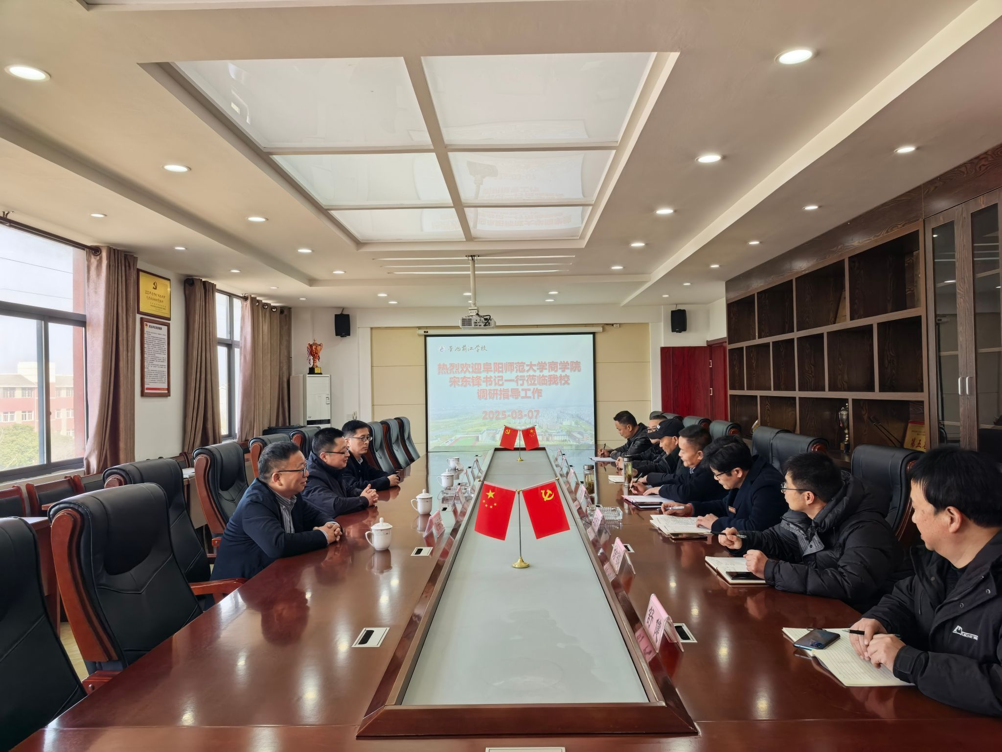 在贵池前江学校、池州六中,宋东锋一行与校领导座谈交流,面向高三学生进行了本科生的招生宣传,并举行了“优质生源地”的授牌仪式。