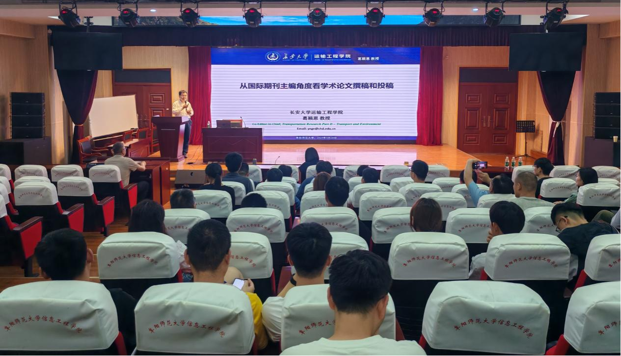 5月20日下午,长安大学二级教授、博士生导师、运输工程学院院长、国际学术期刊Transportation Research Part D: Transport &Environment主编葛颖恩教授在清河校区125报告厅为我院师生作了一场题为《从国际期刊主编角度看学术论文撰稿和投稿》的讲座。讲座由我院院长张雪梅主持,学院全体研究生及相关专业教师参会。