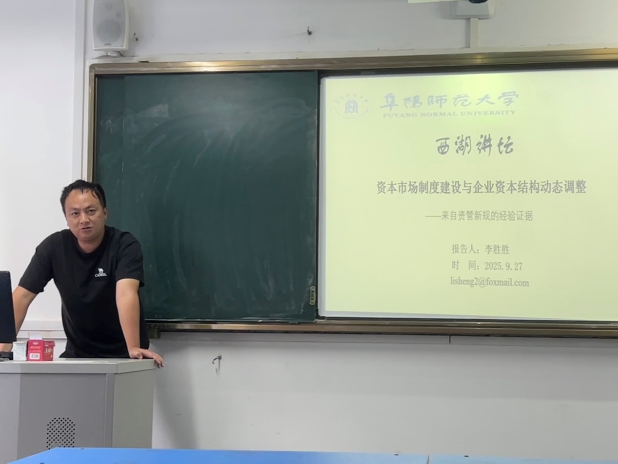 2025年9月27日,由科研处主办、商学院承办的2025年度“西湖讲坛”在清河校区主楼110教室顺利举行。本期讲坛由我院李胜胜博士担任主讲嘉宾,作题为“资本市场制度建设与企业资本结构动态调整”的学术报告。报告由企业管理系主任贺琳副教授主持。