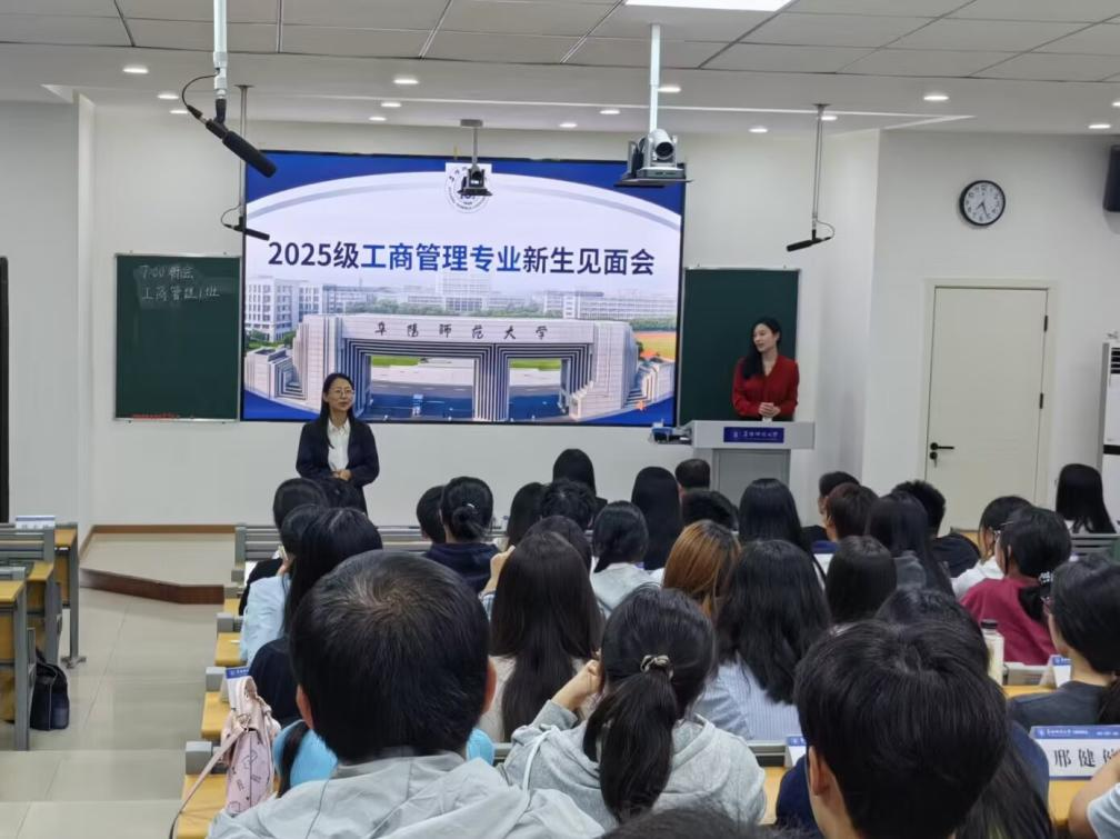 9月29日,学院举办工商管理专业2025级新生见面交流会。学院院长张雪梅、副院长张克荣及全体专任教师参加,与新生们共话成长,现场气氛热烈活跃。