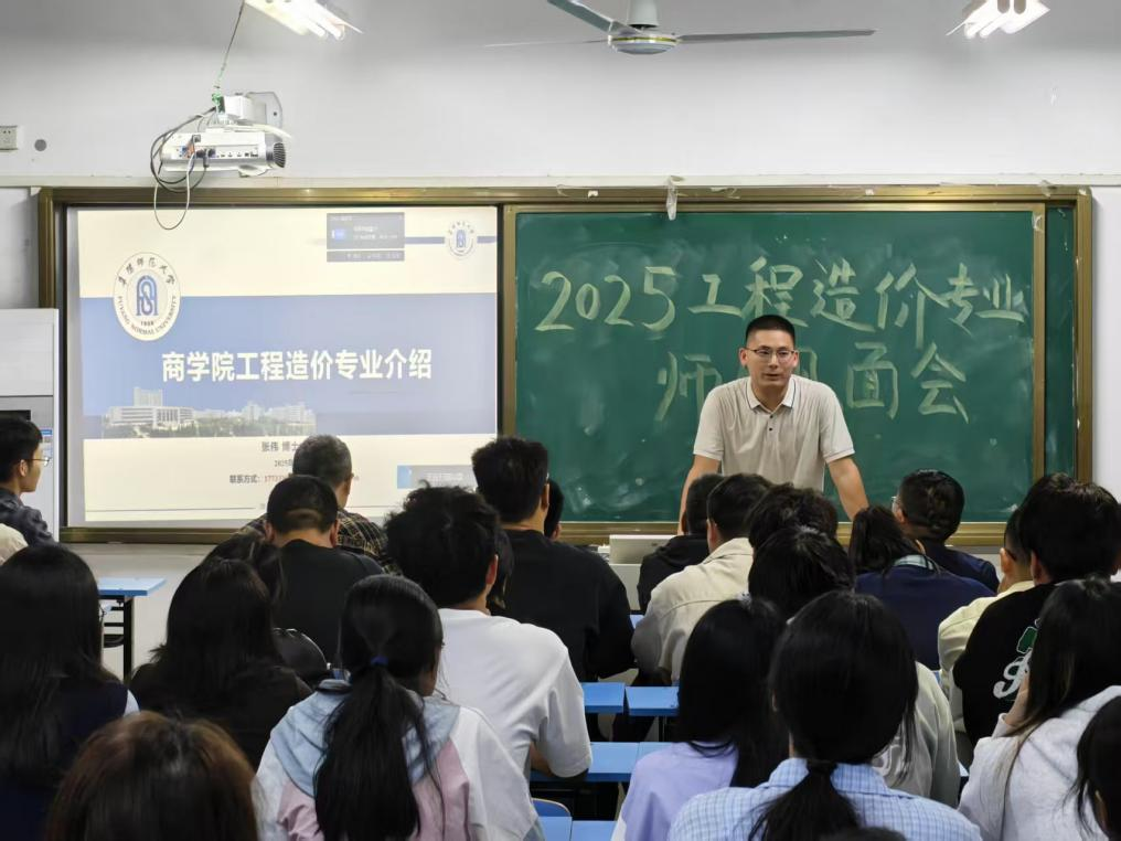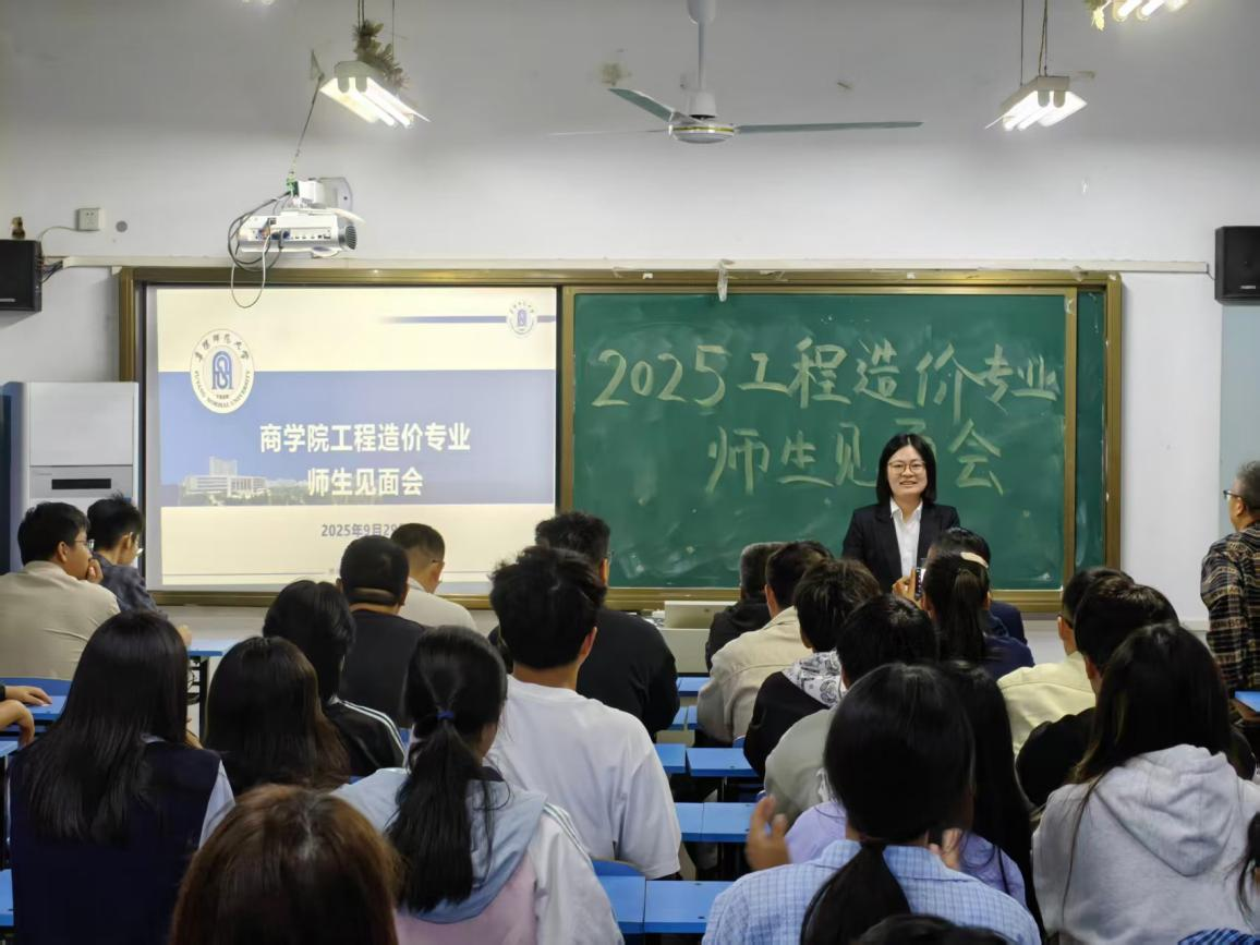 为扎实推进新生入学教育、增进师生双向了解,9月29日下午,我院2025级工程造价专业师生见面会于阜阳师范大学清河校区致远楼206教室顺利举行。我院院长张雪梅、工程造价教研室主任张苛、专业全体专任教师及2025级全体新生共同参会。
