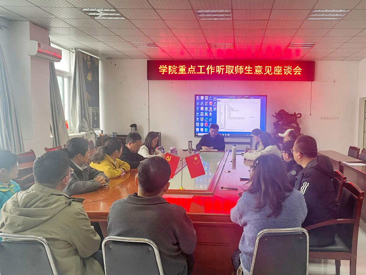 座谈会上,吴学军向参会人员逐一介绍了学院形象标识设计征集、学院搬迁、“十五五”规划编制等重点工作推进情况,详细说明了各项工作的思路与规划。与会师生代表结合实际,围绕学院学科专业建设、院徽文化内涵与视觉呈现、办公设施保障以及教学管理、学风建设等方面,踊跃发言,各抒己见,提出了诸多针对性强、切实可行的意见和建议,充分展现了师生心系学院发展、主动建言献策的责任与热情。学院领导认真倾听、详细记录,与师生代表深入交流探讨,对相关问题进行了回应。