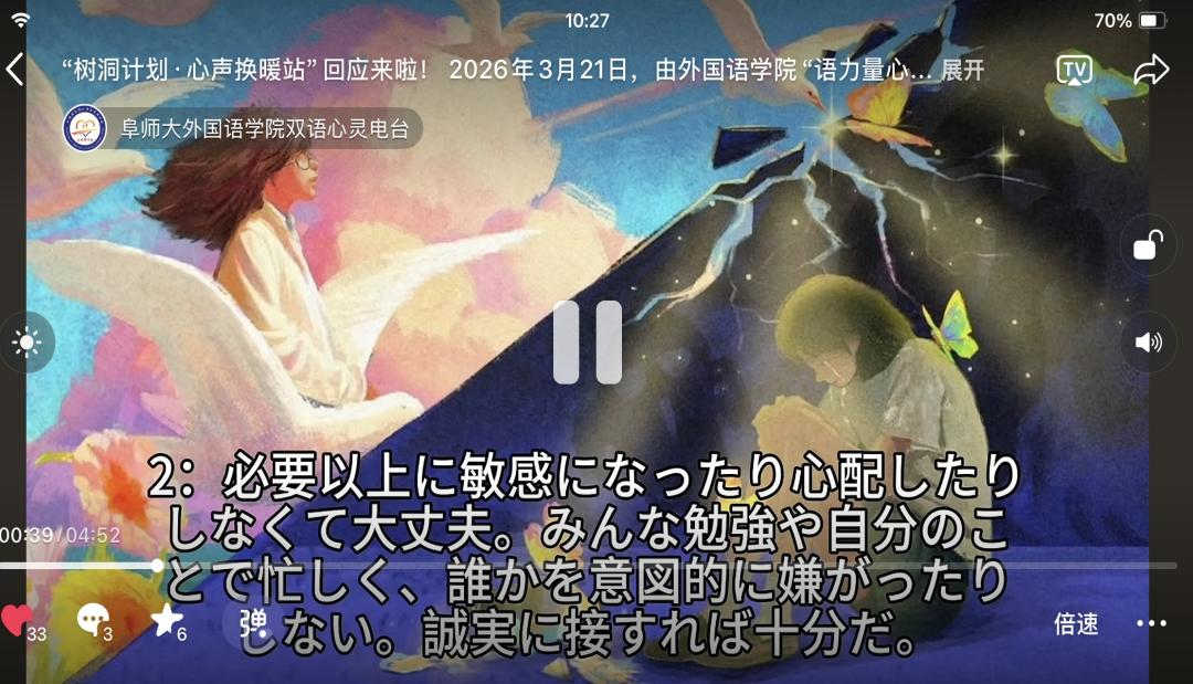 3月20-22日,电台回响活动温情开展。学生将写有新学期困惑、烦恼或心声的纸条,投入由涂鸦袋改造而成的“心灵树洞”,即可兑换暖心礼物一份。所有投递内容经匿名处理后,纳入学院心理电台专栏素材库,通过外国语学院双语心灵电台官方小红书及抖音账号进行选读与暖心回应,形成“倾诉—倾听—回应—共愈”的闭环支持机制,让每一份心事皆有回响。