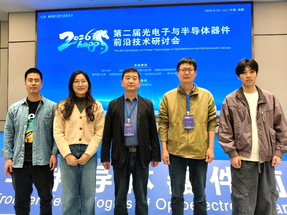 为促进我国光电子与半导体器件领域的技术创新与学术交流,推动相关学科发展与产业融合,2026年4月10日至12日,我院联合承办的“第二届光电子与半导体器件前沿技术研讨会”在四川成都成功召开。作为主办单位之一,我院积极参与了会议的组织与学术交流工作。院长朱勇教授和副院长武山教授携物电学院师生8人参加了本次活动,并与来自全国高校及科研院所的专家学者进行了深入交流。朱爽鑫博士、李欣欣博士、姜龙龙博士参加会议并应邀作邀请报告,展示了学院在光电子与半导体器件领域的最新研究成果。吴成武等多名研究生也参加了会议,通过墙报展示等形式积极学习交流,拓宽了学术视野。
