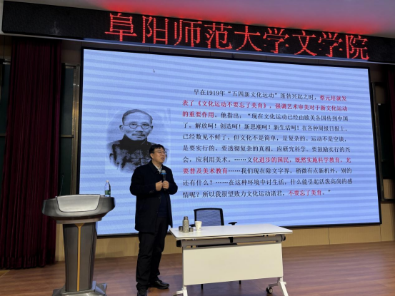 3月7日下午,教育部青年长江学者、山东大学文艺美学研究中心教授、博士生导师杨建刚应邀为文学院师生作“中国现代审美启蒙的两条路径及其演进逻辑”的主题学术报告。文学院副院长尹奇岭教授主持报告会。
